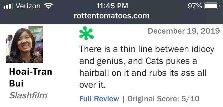 After the release of the first cats trailer in july most fans assumed the reaction to the live action remake would be bad. Rotten tomatoes the 64 most anticipated movies of 2020 sundance 2020 movie scorecard. Cats coughs up a hairball on rotten tomatoes but is it really that bad.