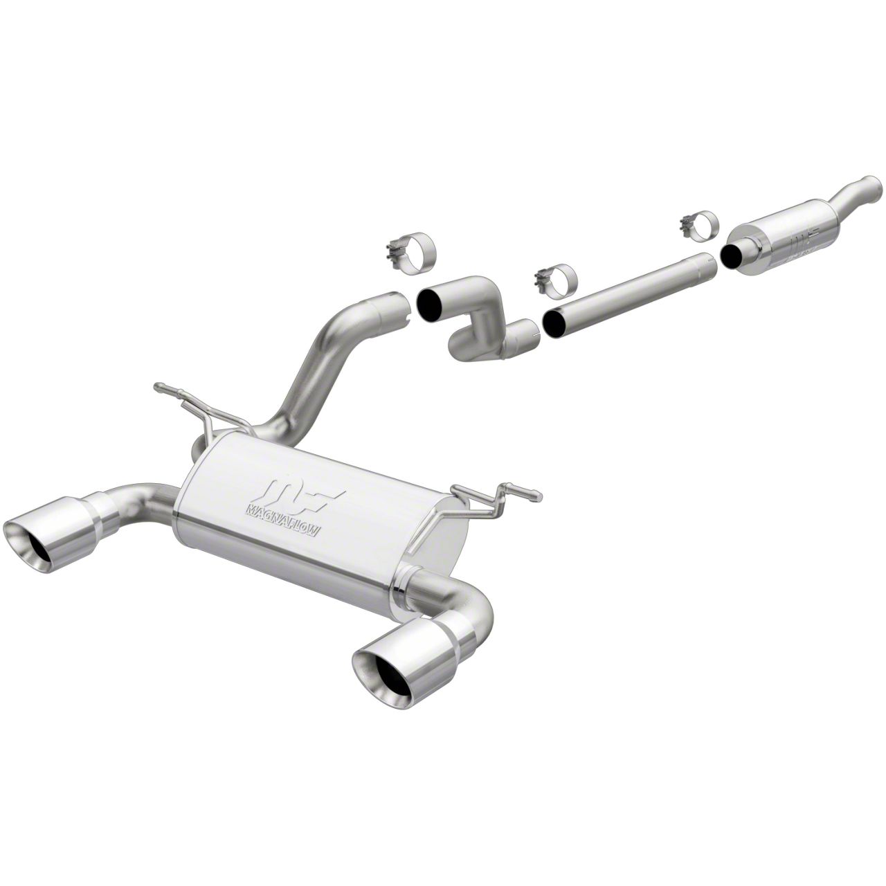 Cat back exhaust systems generally use larger diameter pipe than the stock system. A modern day exhaust system on a naturally aspirated car looks something like this. Cat back exhaust systems will include any pipes that run from the catalytic converter to the muffler the muffler itself any pipes that may run from the muffler to the exhaust tips and the exhaust tips themselves.