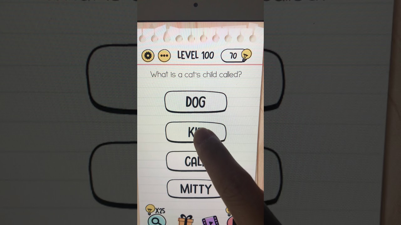 About brain test game. The cats child is a cat too so click on cat in the instruction. Brain test level 100 what is a cats child called answers.